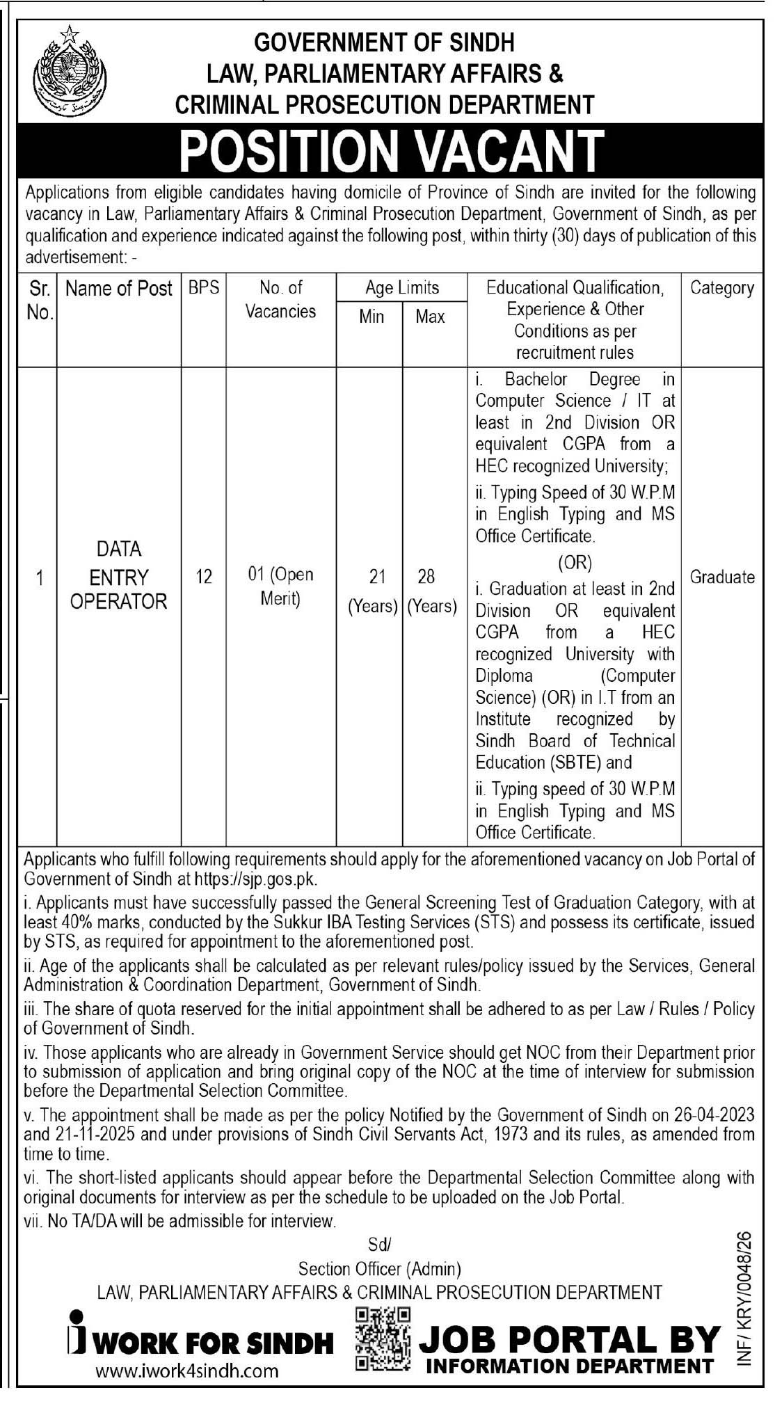 - Search for “Data Entry Operator – Law, Parliamentary Affairs & Criminal Prosecution Department”