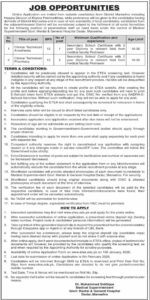| Clinical Technician Pharmacy | 12 | 02 | Secondary School Certificate with 2-year Diploma in relevant field from Medical Faculty Peshawar | Not specified | 18-30 years |