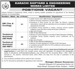 Karachi Shipyard & Engineering Works Limited Vacancies