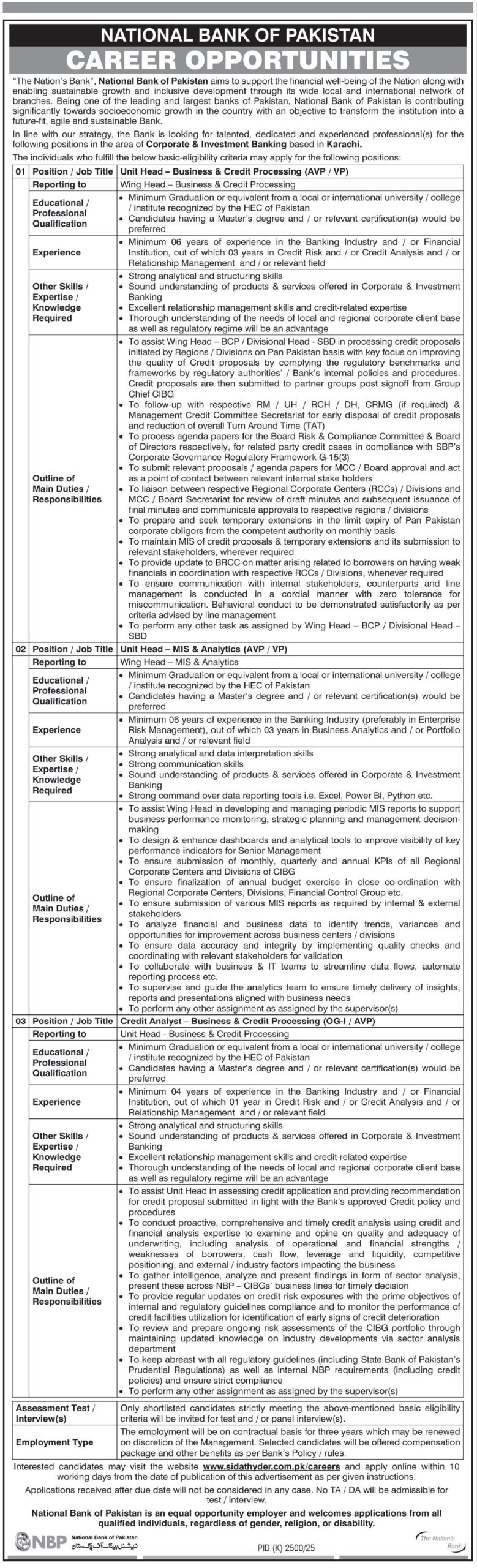 National Bank of Pakistan is an equal opportunity employer and welcomes applications from all qualified individuals, regardless of gender, religion, or disability.