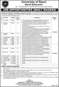 Job Opportunities (Daily Wagers) at University of Rasul, Mandi Bahauddin
